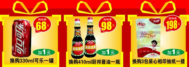 活动期间,凡在乐天城二楼洪都超市一次性购物满指定金额,再加一元即可换购指定商品一件。(数量有限 换完即止)