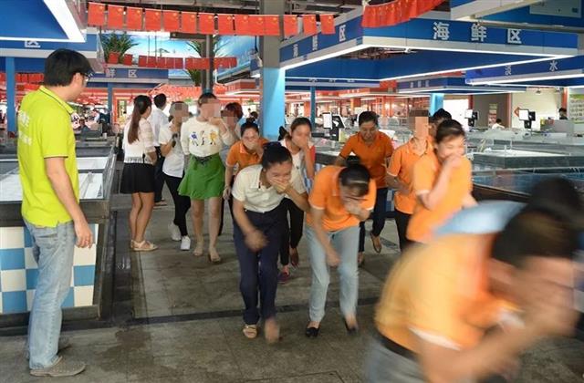 消防演练从报火警,到引导疏散顾客,现场警戒、组织扑灭等,整个现场有条不紊。