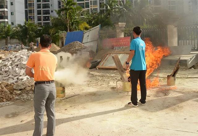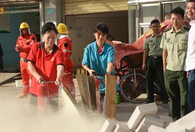 此次消防演练,由消防官兵为现场人员讲解消费知识并现场示范灭火器灭火。