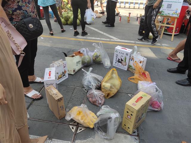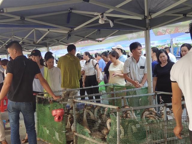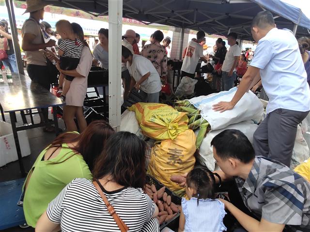 秉承精准扶贫、消费有情、大爱无疆的理念,遵循“爱心扶贫集市,小康路上同行”的活动主题,乐天城活动专场共设置了24个摊位,三亚各区的相关产业合作社、贫困户共携100多种农产品前往展销售卖,市民们纷纷献上爱心去选择购买,现场十分火爆。